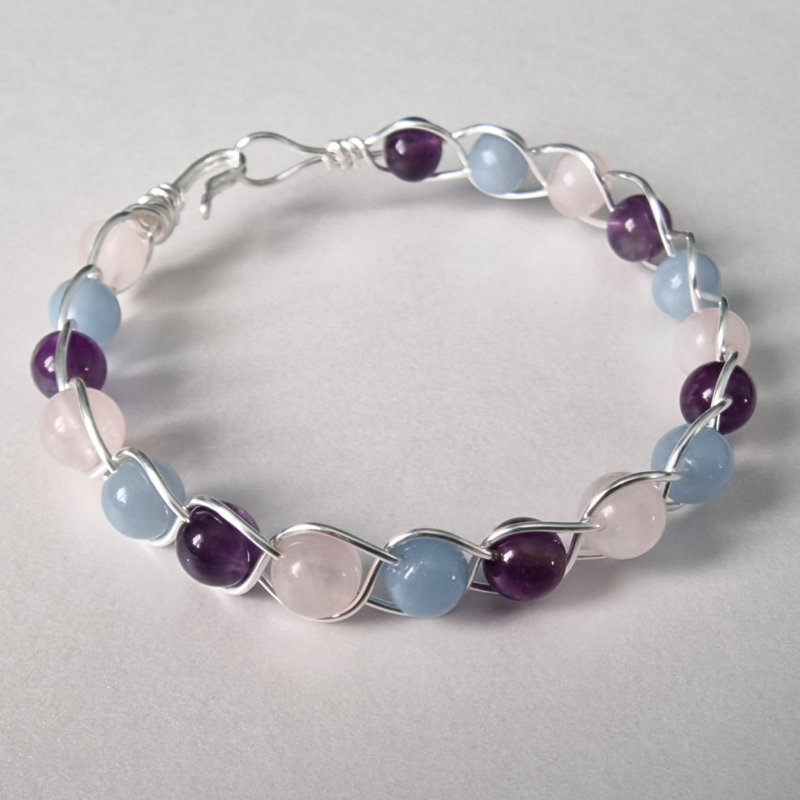 If you'd like help selecting your crystal beads, check out the "Crystal Bead Guide" with themes, chakras, zodiac and healing benefits listed to help you find the perfect blend. The photo here is Amethyst, Angelite and Rose Quartz.
